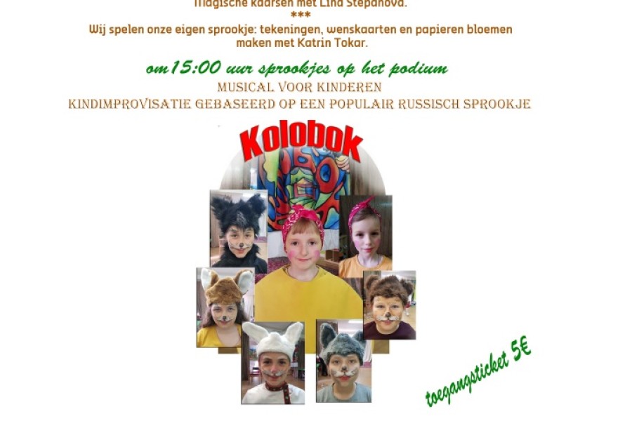 Om 15.00 uur presenteren onze jonge artiesten een muzikale voorstelling "Kolobok" (gebaseerd op het populaire Russische sprookje).