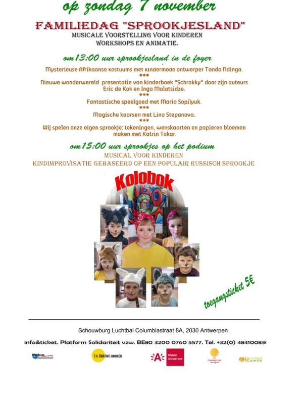 We nodigen je uit op zondag 7 november voor de Familiedag "Sprookjesland”, die zal plaatsvinden op het adres: Schouwburg Luchtbal, Columbiastraat 8A, 2030 Antwerpen.